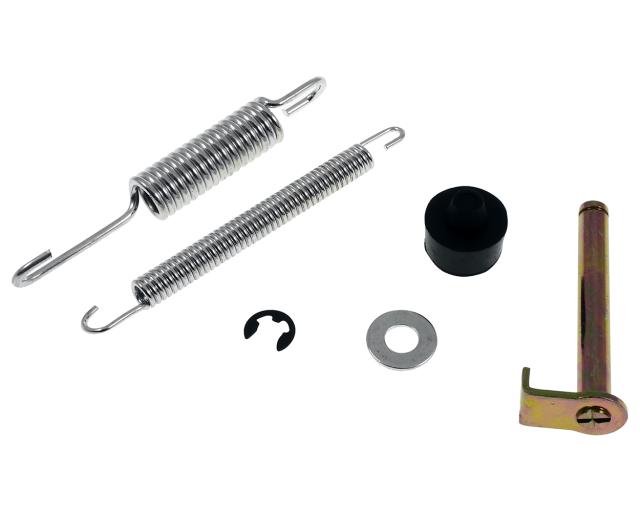 Kompletter Hauptständerkit für liegende Minarelli Motoren mit 13 Zoll Rädergröße Aprilia SR50 und Aerox/ Nitro. Geliefert wird inklusive Federn und allen benötigten Montagematerialien. Der Bedienungshebel wurde vergrößert und ermöglicht nun ein spürbar leichteres Aufbocken des Fahrzeuges.